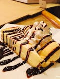 New York-style creamy cheesecake drizzled with your choice of chocolate, caramel, or strawberry syrup.